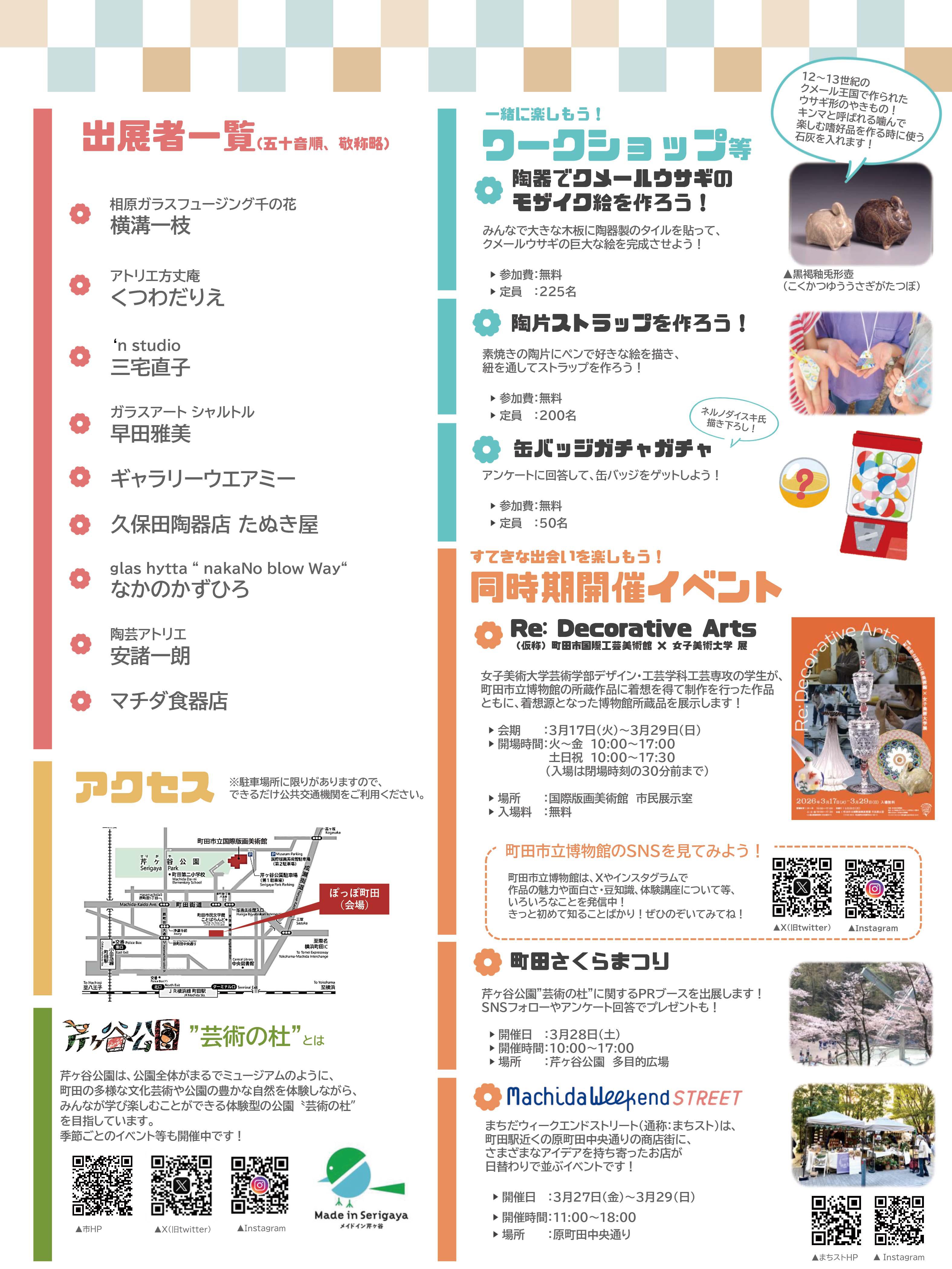 開催日:2026年3月28日(土) 工芸とともにある豊かな生活を「町田の当たり前」にするため、 ☆入場無料 お問合せ先 町田市美術館課 TEL 042-724-2909 |